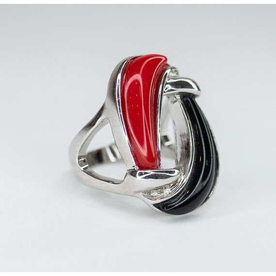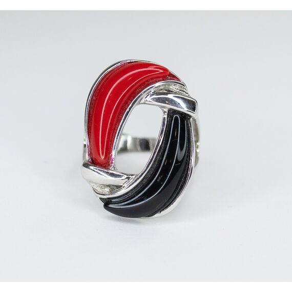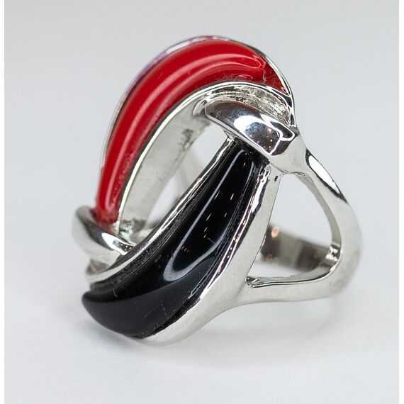 Кольцо женское из гипоаллергенного ювелирного сплава серого цвета с покрытием эмалью красного и черного цвета. Без вставок. Высота кольца-2,5см. Размер-18,0.
