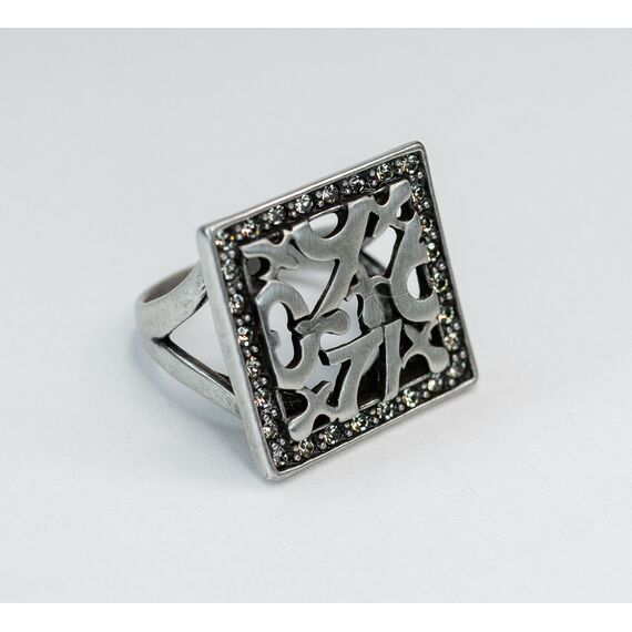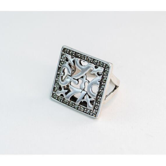 Кольцо женское из гипоаллергенного ювелирного сплава серого цвета. Вставка- циркон, цвет- белый. Высота кольца--2,5см, ширина-2,5см. Размер-18,0.