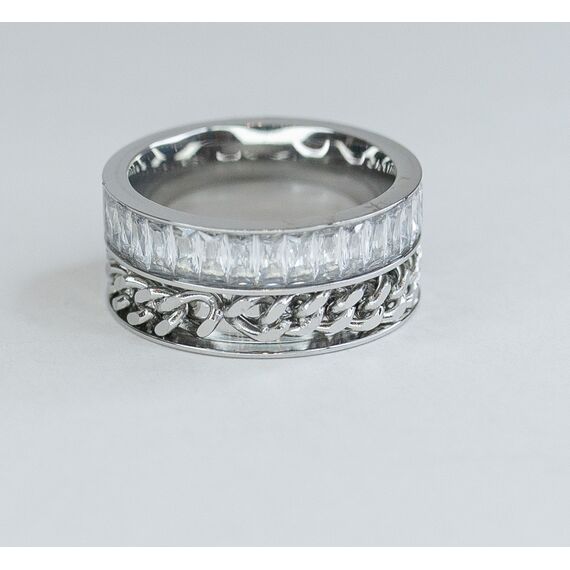 Кольцо женское из гипоаллергенного ювелирного сплава серого цвета. Вставка- циркон белого цвета. Высота кольца- 1,0см. ширина- 2,0см. Размер-19,0.