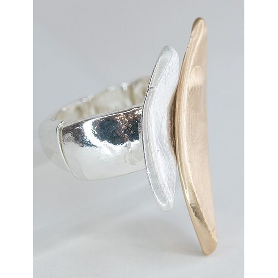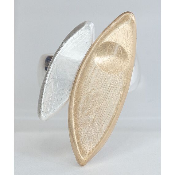 Кольцо женское из гипоаллергенного ювелирного сплава серого и желтого цвета. Без вставок. Высота кольца- 2,5см. ширина- 2,0см. Размер-17,0.