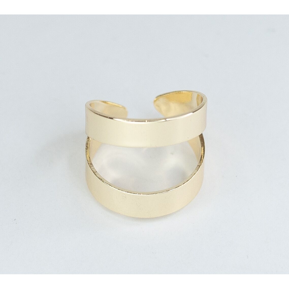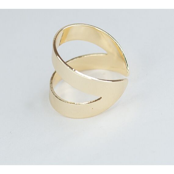 Кольцо женское из гипоаллергенного ювелирного сплава желтого цвета. Без вставок. Высота кольца- 2,0см. ширина- 2,0см. Кольцо незамкнутое, безразмерное.