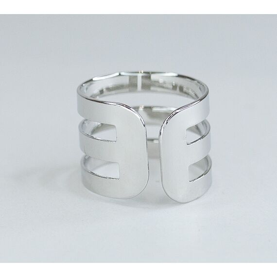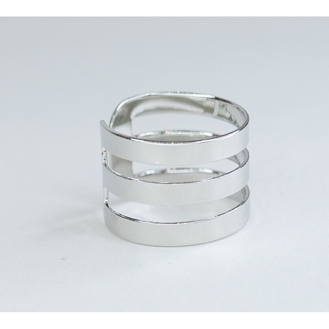 Кольцо женское из гипоаллергенного ювелирного сплава серого цвета. Без вставок. Высота кольца- 2,5см, ширина- 2,0см. Кольцо незамкнутое, безразмерное.