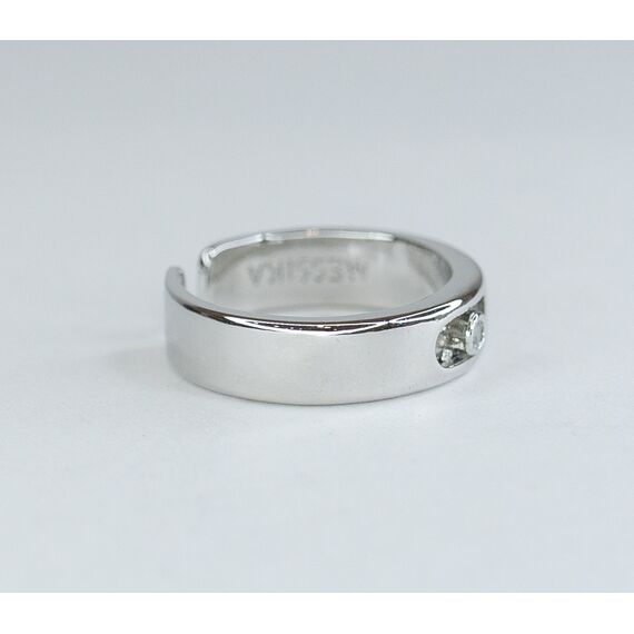 Кольцо женское из гипоаллергенного ювелирного сплава серого цвета. Вставка- циркон белого цвета. Высота кольца- 1,0см, ширина- 2,0см. Кольцо незамкнутое, безразмерное.