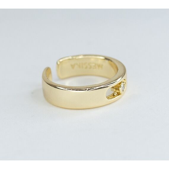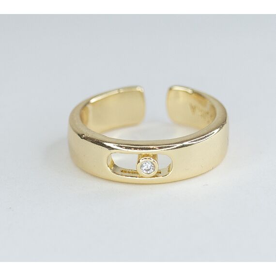 Кольцо женское из гипоаллергенного ювелирного сплава желтого цвета. Вставка- циркон белого цвета. Высота кольца- 1,0см, ширина- 2,0см. Кольцо незамкнутое, безразмерное.