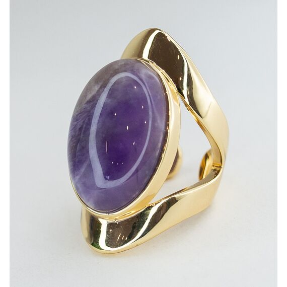 Кольцо женское из гипоаллергенного ювелирного сплава желтого цвета. Вставка- имитация натур. камня фиолетового цвета. Высота кольца- 3,0см, ширина- 2,0см. Кольцо незамкнутое, безразмерное.