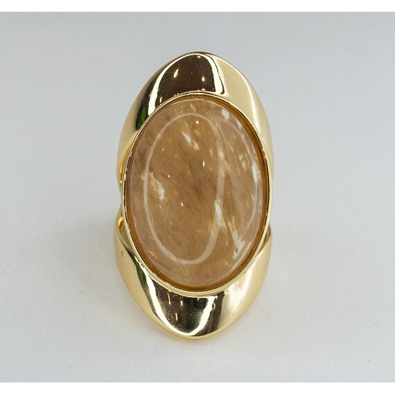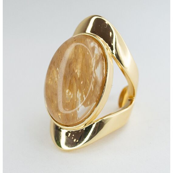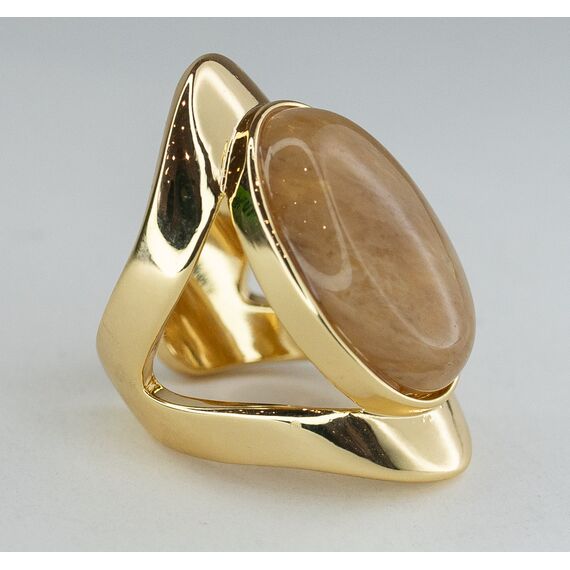 Кольцо женское из гипоаллергенного ювелирного сплава желтого цвета. Вставка- имитация натур. камня бежевого цвета. Высота кольца- 3,0см, ширина- 2,0см. Кольцо незамкнутое, безразмерное.