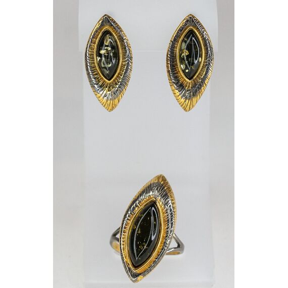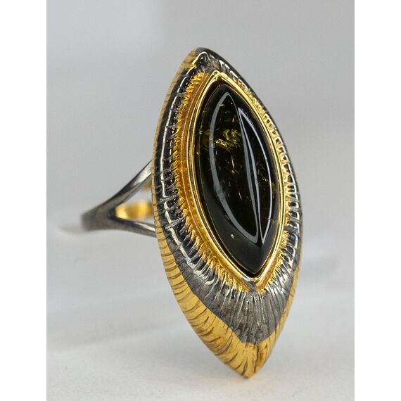 Кольцо женское из гипоаллергенной бронзы с позолотой и родием. Вставка- нат.янтарь зеленого цвета ( размер камня- 2,0/1,0см). Высота кольца- 3,0см, ширина-2,0см. Кольцо незамкнутое, безразмерное.