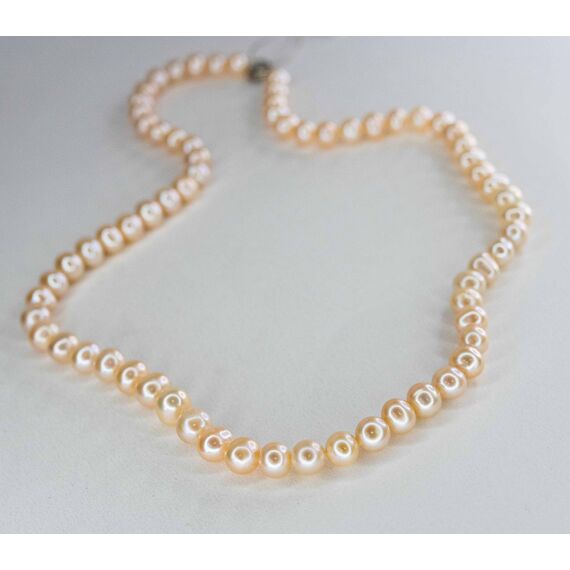Бусы из природного речного жемчуга почти сферической формы (6мм). Бусины теплых кремовых оттенков с блеском перламутрового слоя. Длина-45,0см. Замок из гипоаллергенного ювелирного сплава серого цвета- круглый карабин.