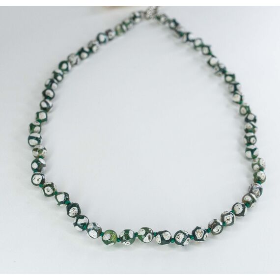 Бусы ( колье) из бусин обсидиана, цвет- белый, зеленый. Длина-50,0см. Застежка из гипоаллергенного ювелирного сплава серого цвета-карабин.