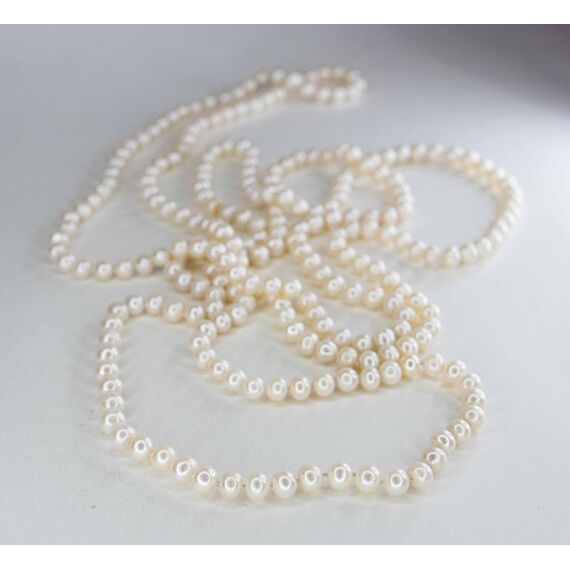 Бусы из природного речного жемчуга почти сферической формы (7-7,5мм). Бусины теплых белых оттенков с блеском перламутрового слоя. Длина-120,0см., без замка.