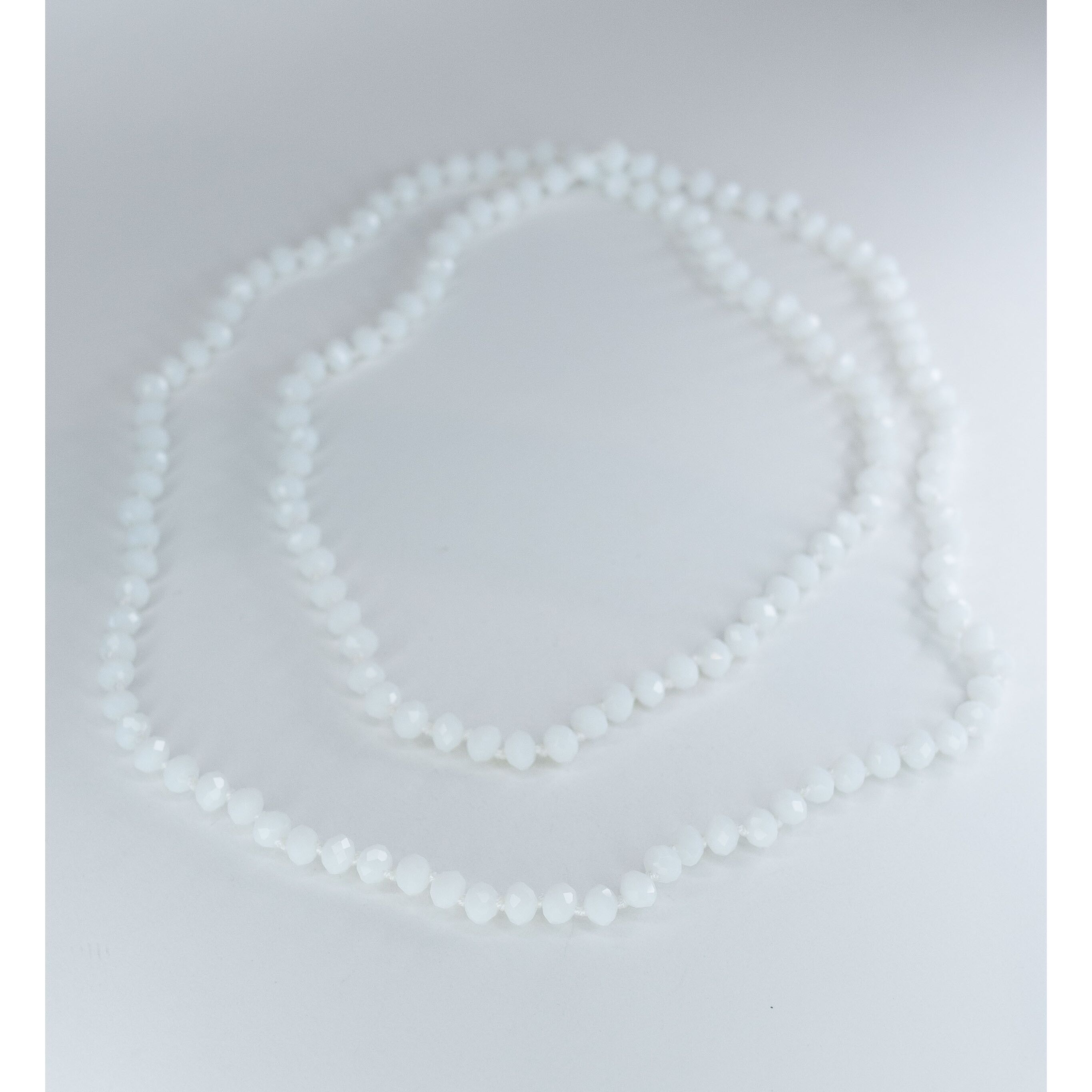 Бусы из бусин белого кварца (высота-1,0см). Длина бус- 100,0см , без замка.
