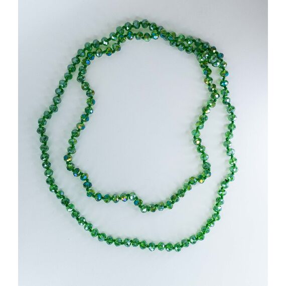 Бусы из бусин зеленого кварца (высота-1,0см). Длина бус- 120,0см , без замка.