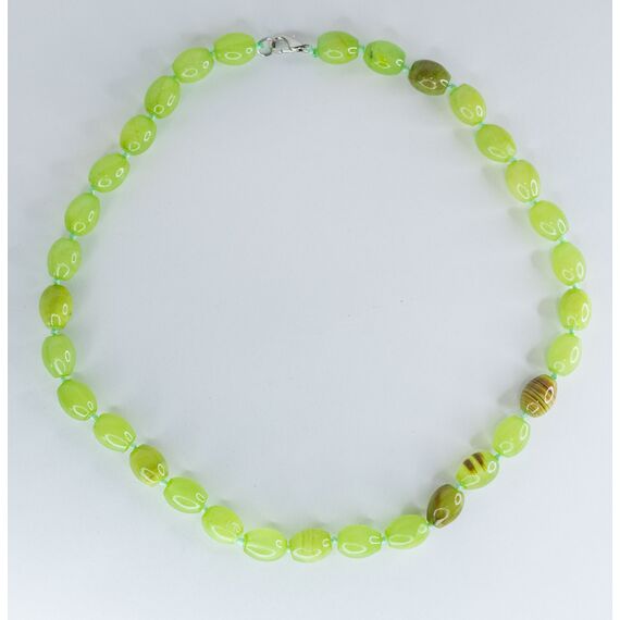 Бусы ( чокер) из бусин натурального оникса (диаметр-1,0см) светло-зеленого цвета. Длина бус- 50,0см с удлиняющей цепочкой, с замком (карабин) из гипоаллергенного ювелирного сплава серого цвета.