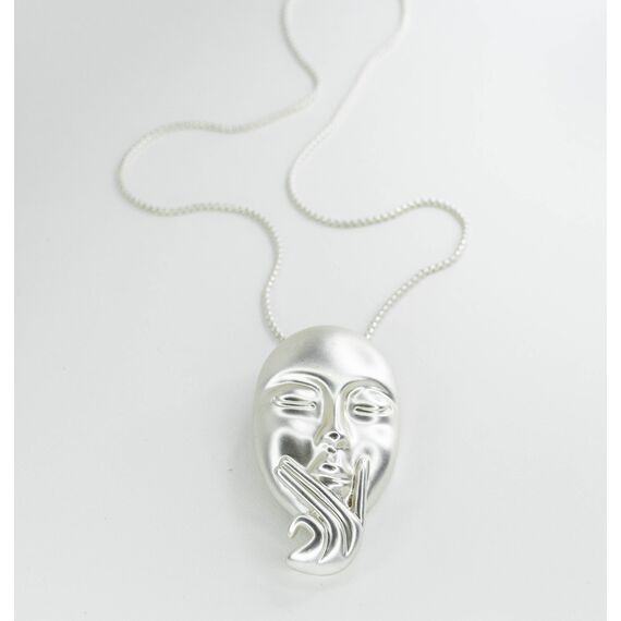 Колье(цепочка+подвеска) из гипоаллергенного ювелирного сплава серого цвета. Без вставок. Длина цепи-80,0см. Замок- карабин. Высота подвески-7,5см, ширина-4см.