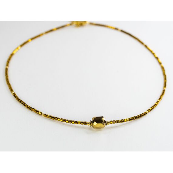 Колье-чокер из гипоаллергенного ювелирного сплава желтого цвета.Состоит из звеньев-кубиков .Без вставок. Длина колье-40,0+5см.