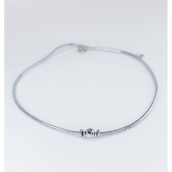 Колье женское из гипоаллергенного ювелирного сплава серого цвета со вставкой в виде шара по центру. Высота вставки- 1,0см. Длина цепи- 40,0см с удлинением. Замок- карабин.
