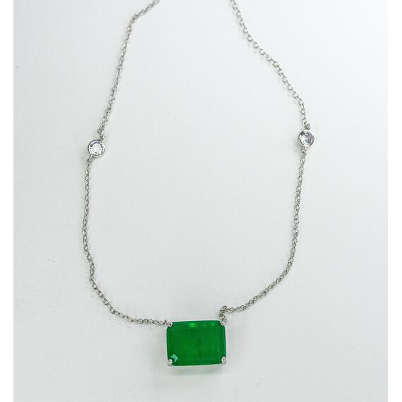 Колье из гипоаллергенного ювелирного сплава серого цвета. Вставка- ювелирное стекло зеленого и белого цвета. Длина колье-45,0см. Высота подвески-1см, ширина-1,5см.