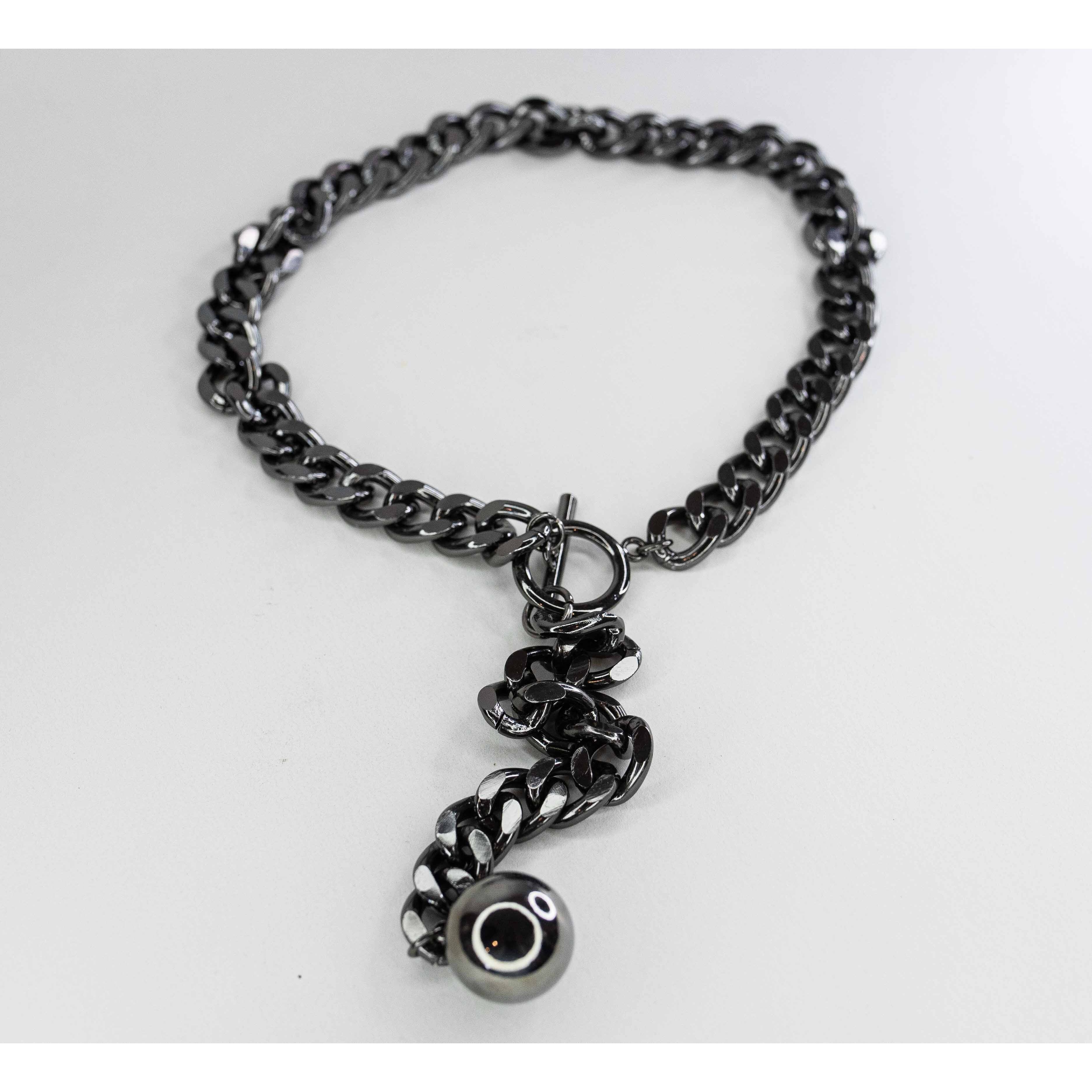 Колье из гипоаллергенного ювелирного сплава черного цвета. Длина колье-40,0см+ подвеска ( цепочка-10,0см и шарик диаметром 2см). Замок у колье-тогл.