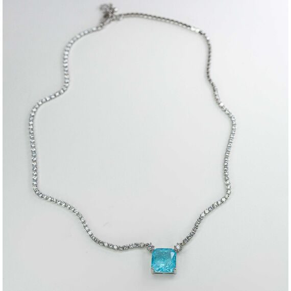 Колье из гипоаллергенного ювелирного сплава серого цвета со вставками из ювелирного стекла белого цвета. В центре колье вставка из кварца голубого цвета, размером--1,0/1,0см. Замок у колье-карабин, длина-40,0см.