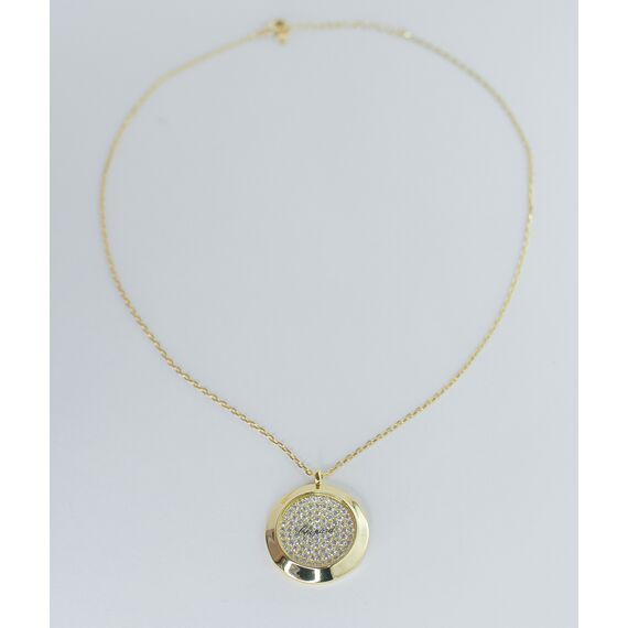 Колье (цепь+подвеска) женское из гипоаллергенного ювелирного сплава желтого цвета. Вставка в подвеске- циркон, цвет- белый. Высота подвески-3,0см, ширина-2,5см. Длина цепи-50,0см с цепочкой на удлинение. Замок- карабин.