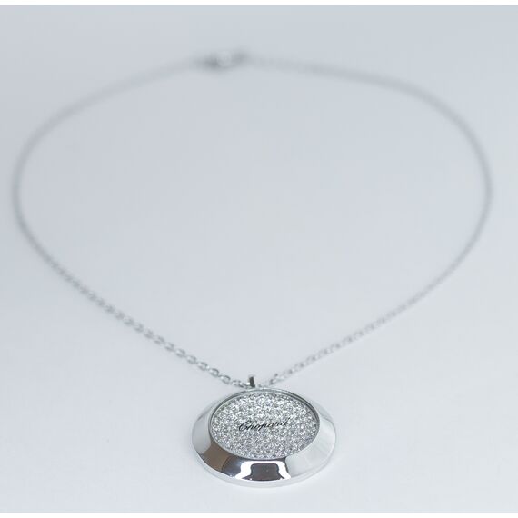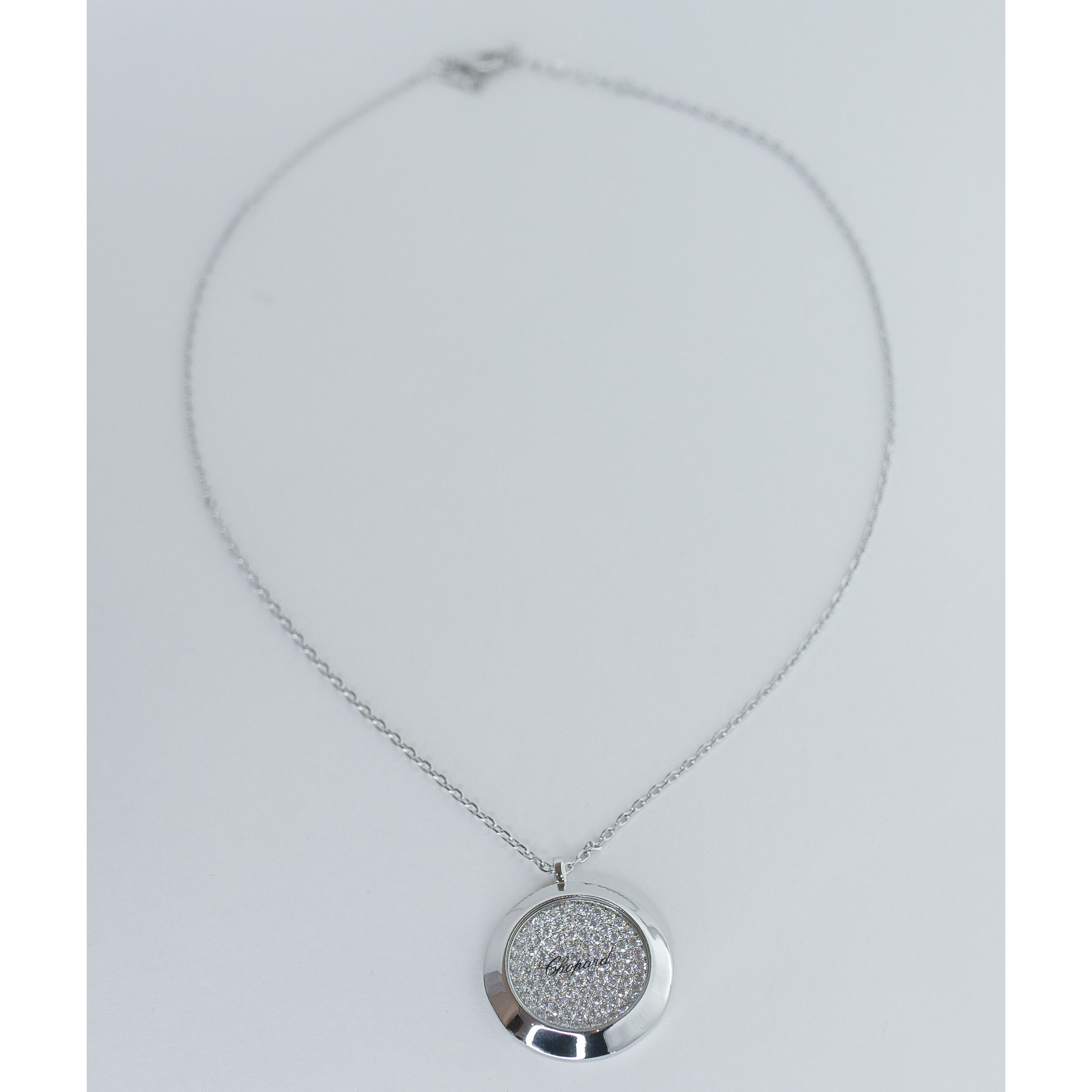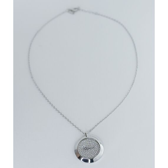 Колье (цепь+подвеска) женское из гипоаллергенного ювелирного сплава серого цвета. Вставка в подвеске- циркон, цвет- белый. Высота подвески-3,0см, ширина-2,5см. Длина цепи-50,0см с цепочкой на удлинение. Замок- карабин.