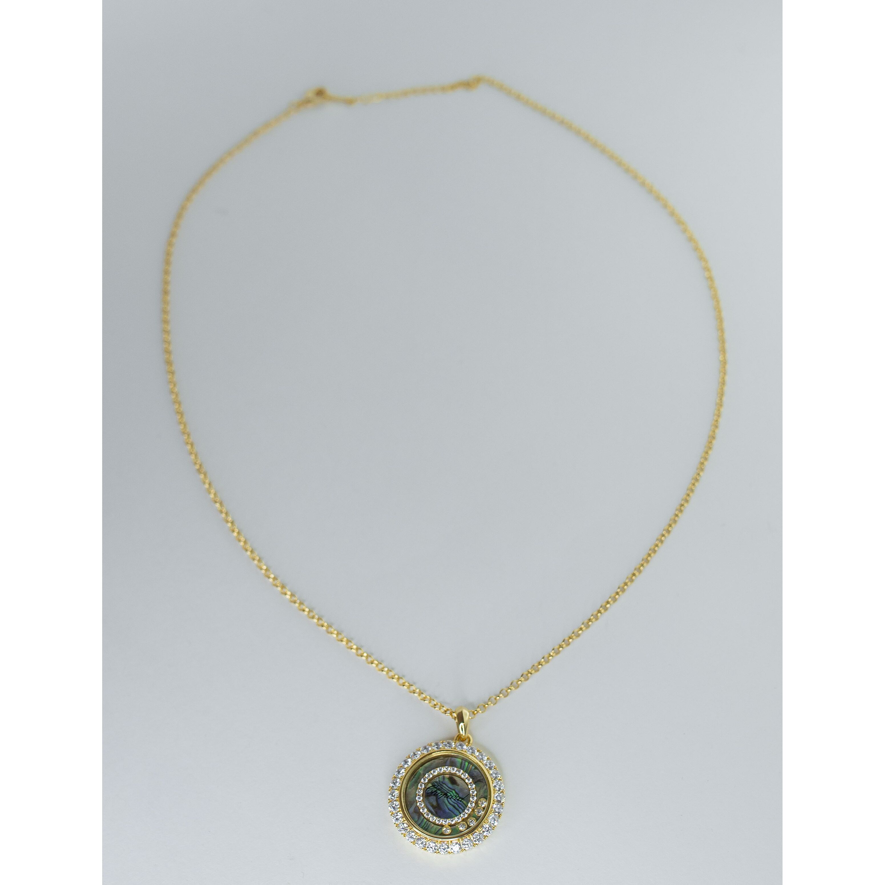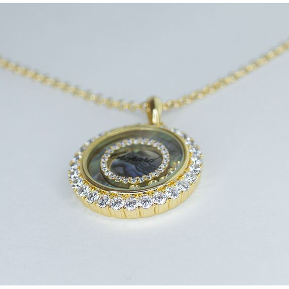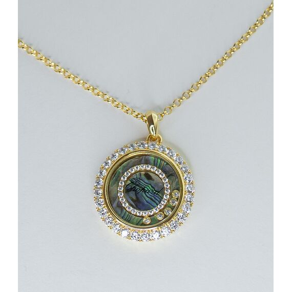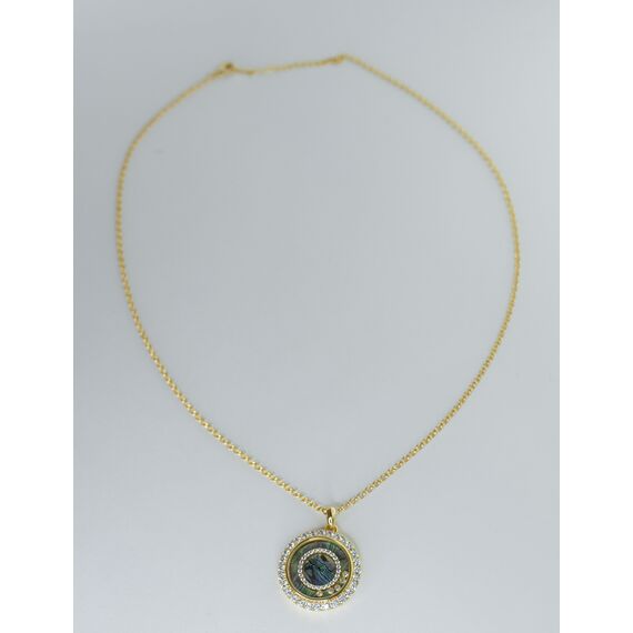 Колье (цепь+подвеска) женское из гипоаллергенного ювелирного сплава желтого цвета. Вставка в подвеске- циркон, цвет- белый и перламутр радужного цвета. Высота подвески-3,0см, ширина-2,5см. Длина цепи-50,0см с цепочкой на удлинение. Замок- карабин.