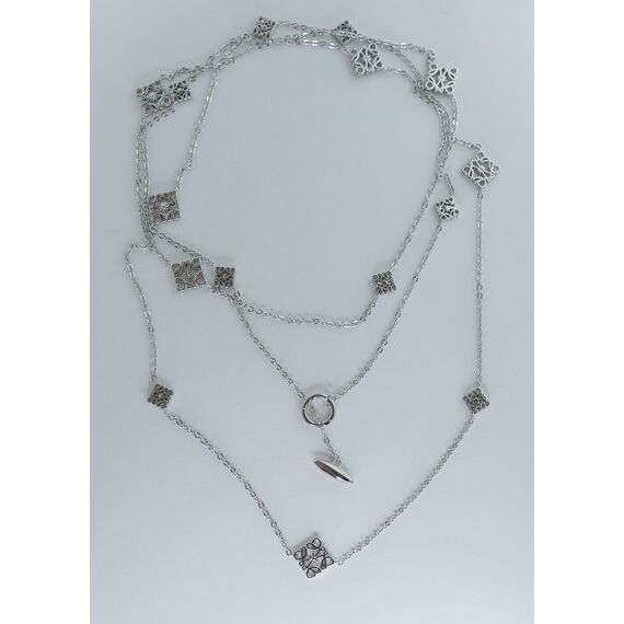 Колье женское из гипоаллергенного ювелирного сплава серого цвета. Состоит из цепочки с фигурными вставками. Длина колье-140,0см, замок- тогл.