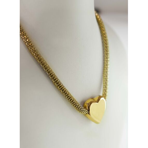 Колье (цепь) женское из высококачественного гипоаллергенного ювелирного сплава желтого цвета с подвеской в виде сердца. Без вставок, высота подвески-3,0см. Длина колье-45,0см, регулируется удлиняющей цепочкой. Замок - карабин.