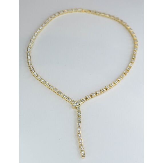 Колье женское из гипоаллергенного ювелирного сплава желтого цвета. Вставка- циркон белого цвета. Высота колье- 1,0см. Длина- 40,0см. Застежка- пусет.