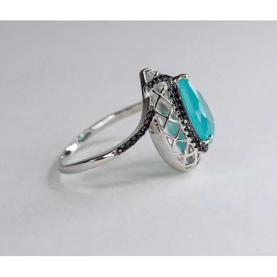 Комплект (серьги+кольцо) из гипоаллергенного ювелирного сплава серого цвета. Вставка- кварц черного и зеленого цвета. Высота серег и кольца-2см, ширина-1,3см. В серьгах английский замок. Кольцо-17,0.