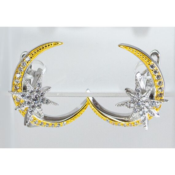 Комплект ( серьги+ кольцо) из гипоаллергенного ювелирного сплава серого и желтого цвета. Вставка- циркон белого цвета. Высота серег-2см, ширина-1,5см. Застежка- английская ( швенза-1см). Кольцо-18,0. Высота кольца-1см, ширина-1,5см.