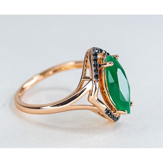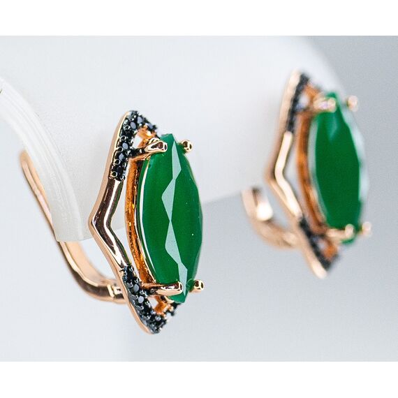 Комплект (серьги+кольцо) из гипоаллергенного ювелирного сплава желтого цвета. Вставка- агат, цвет- зеленый и фианит черного цвета. Высота серег-2,5см, ширина-2,0см. Застежка- английская (швенза-1,0см). Высота кольца-2,5см, ширина-2,0см. Размер-19,0.