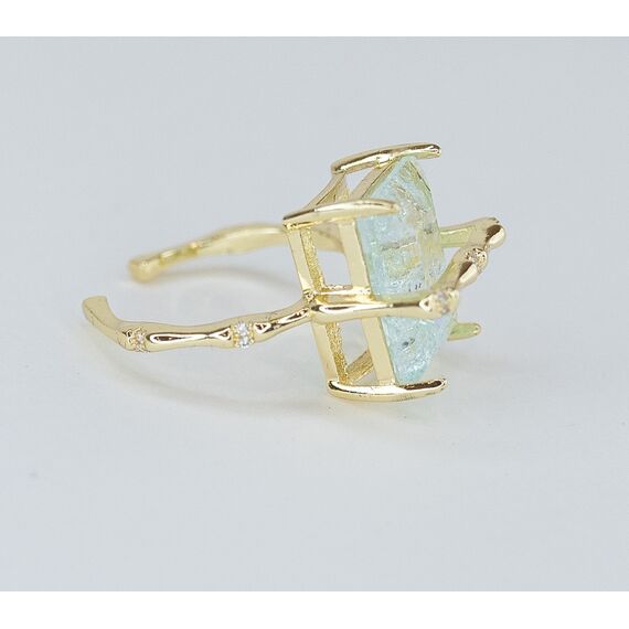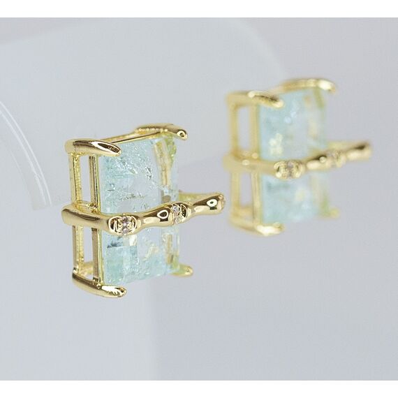 Комплект женский (цепь+подвеска+серьги+кольцо) из гипоаллергенного ювелирного сплава желтого цвета. Вставка- ювелирное стекло голубого цвета. Высота подвески, серег, кольца- 1,5см, ширина-1,0см. Длина цепи- 50,0см с удлинением, застежка- карабин. Замок у серег-английский ( штифт-1,0см). Кольцо незамкнутое, безразмерное.