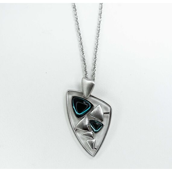 Подвеска женская из гипоаллергенного ювелирного сплава серого цвета. Вставка- улексит, цвет- лондон блю. Высота подвески- 6,0см, ширина- 3,0см. Длина кордовой цепи- 55,0см с удлинением, замок- карабин.