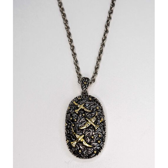 Подвеска из гипоаллергенного ювелирного сплава желтого и серого цвета. Без вставок. Высота подвески-5см, ширина-2,5см. Длина цепи-55см+5, плетение- Кордовая.
