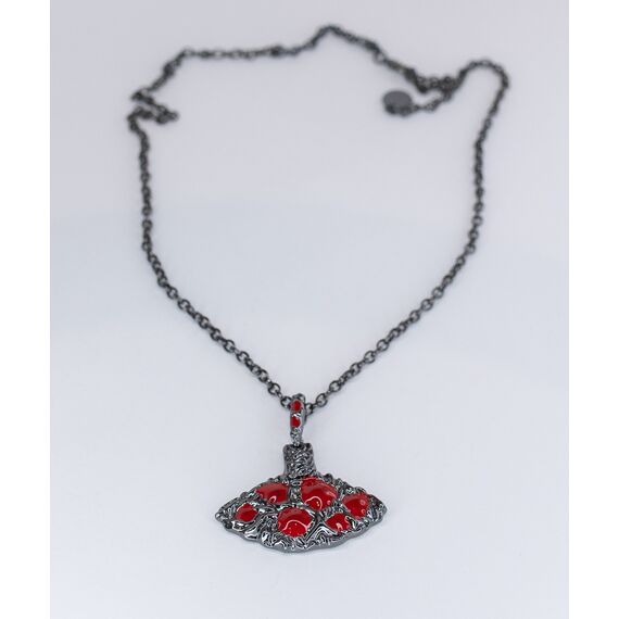 Подвеска женская (колье) из гипоаллергенного ювелирного сплава черного цвета с покрытием эмалью красного цвета. Без вставок. Длина цепи- 55,0см с удлинением. Высота подвески- 3,0см, ширина- 4,0см. Замок - карабин.