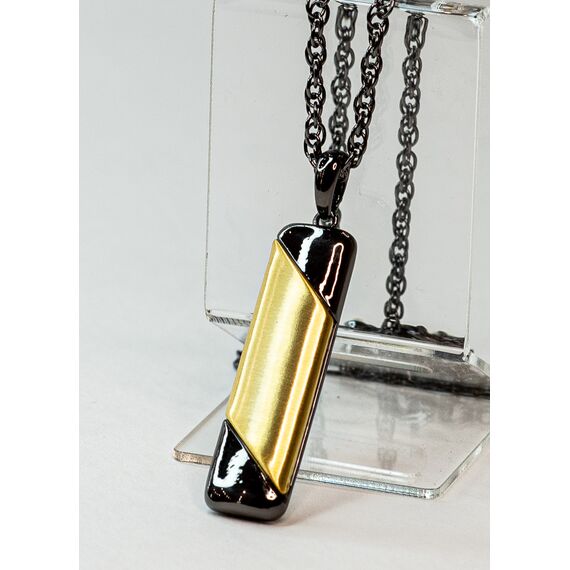 Подвеска из гипоаллергенного ювелирного сплава черного и желтого цвета. Без вставок. Высота подвески-5,5см, ширина-1,2см. Длина кордовой цепи-55,0см. Застежка- карабин.