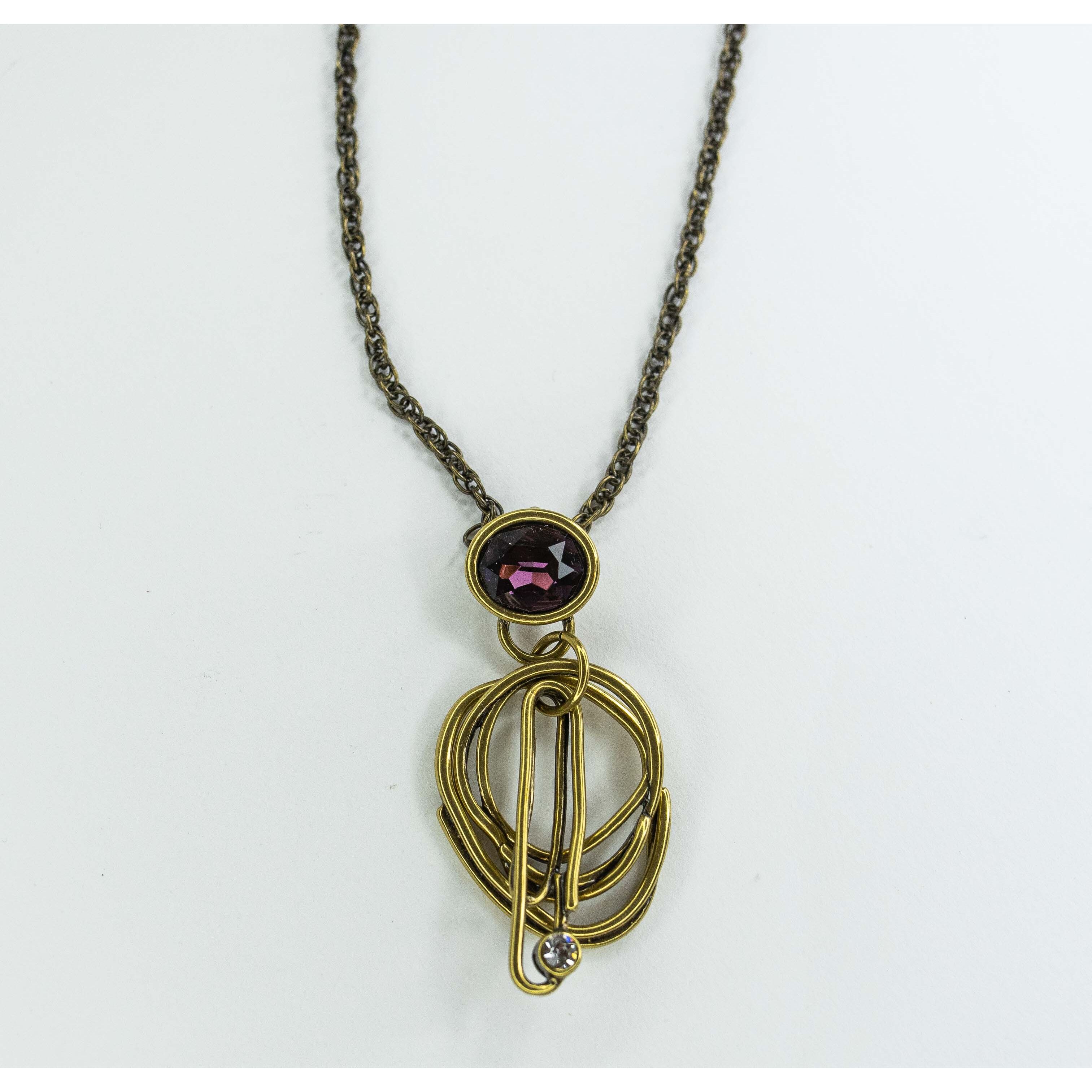 Подвеска из гипоаллергенного ювелирного сплава бронзового цвета. Вставка- ювелирное стекло, цвет- фиолетовый и белый. Высота подвески- 6см, ширина-3см. Длина цепи-55,0+5см, плетение цепи-Кордовая.