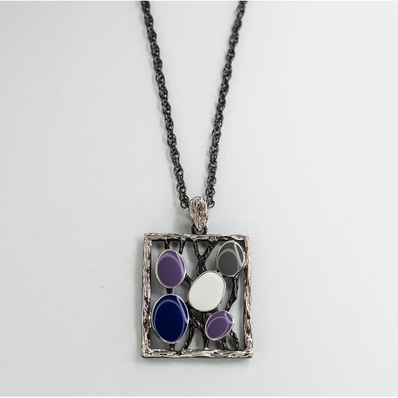 Подвеска из гипоаллергенного ювелирного сплава черного и серого цвета . Без вставок. Покрытие - эмаль, цвет- синий, белый, серый, сиреневый Высота подвески-5см,.ширина-3см. Длина цепи-55,0+5см, плетение- Кордовая.