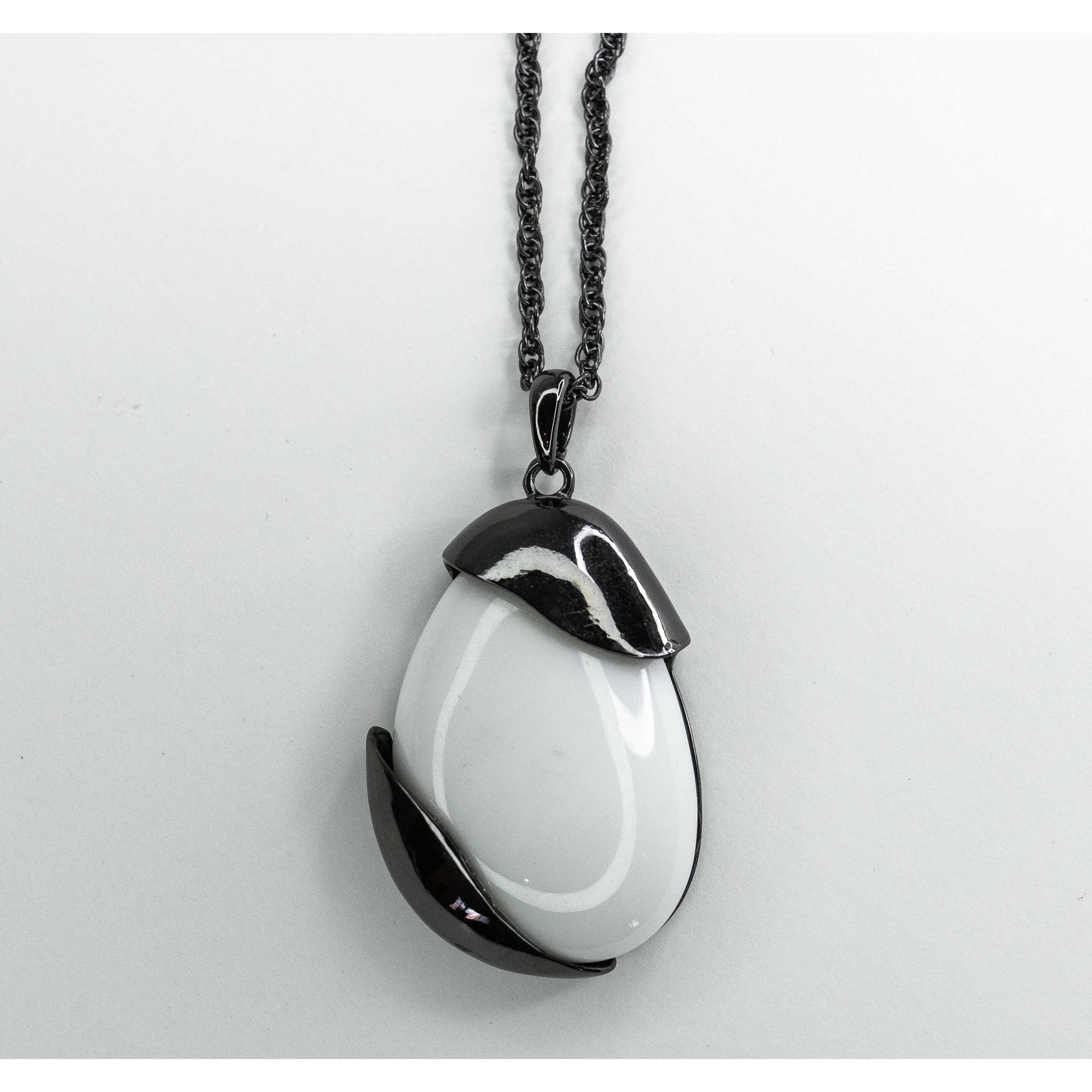 Подвеска женская из гипоаллергенного ювелирного сплава черного цвета. Покрытие эмалью белого цвета. Высота подвески-6см, ширина-3,3см. Длина кордовой цепи-55,0+5см.