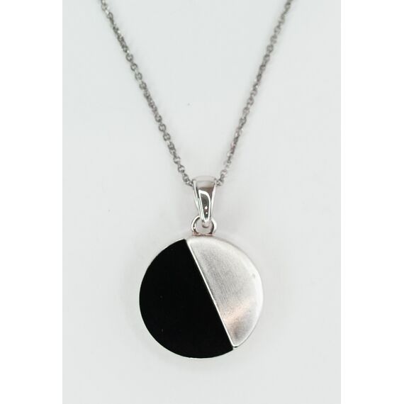 Подвеска женская из гипоаллергенного сплава серого цвета. Покрытие эмалью черного цвета. Длина цепи-50,0см с удлинением. Высота и ширина подвески-1,5см. Застежка у колье- карабин.