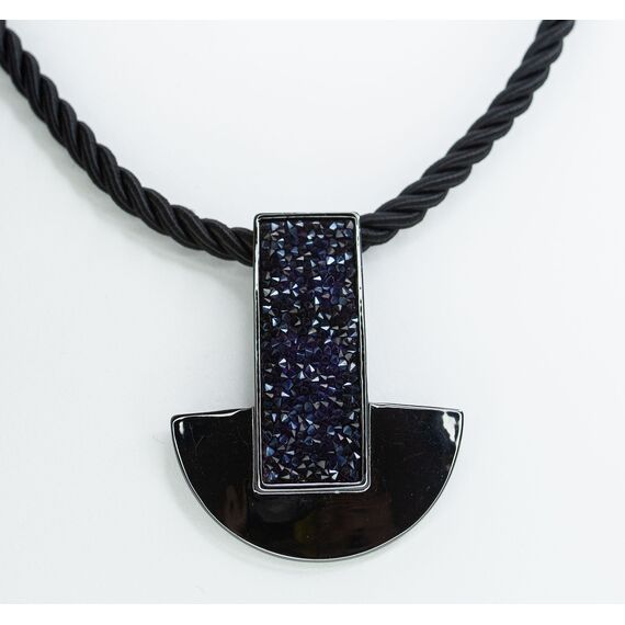Подвеска из гипоаллергенного ювелирного сплава серого цвета. Вставка-ювелирное стекло, цвет-синий, черный. Высота подвески-6см, ширина-5см.Шнур из текстиля, длина-70,0см.