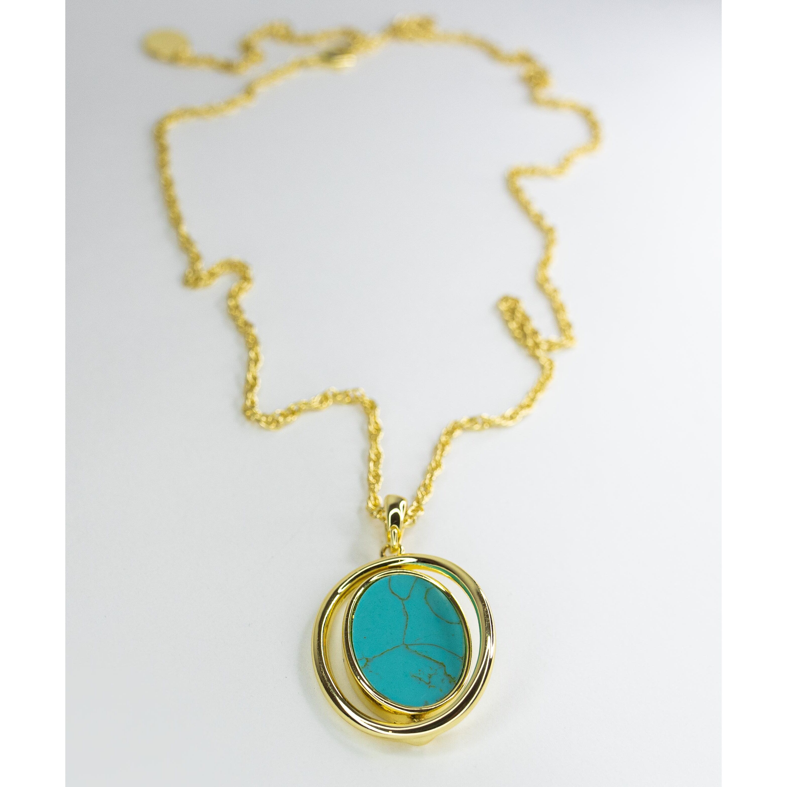 Подвеска ( колье) из гипоаллергенного ювелирного сплава желтого цвета. Вставка- перламутр белого цвета и бирюза, размер вставки(2,5/2,0см). Высота подвески-4,5см, ширина-3см. Длина кордовой цепи-55,0+5см.