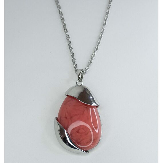 Подвеска ( колье) из гипоаллергенного ювелирного сплава серого цвета. Вставка- эпоксидная смола розового цвета. Высота подвески-6,0см. ширина-4,0см. Длина кордовой цепи-55,0+5см. Замок- карабин.