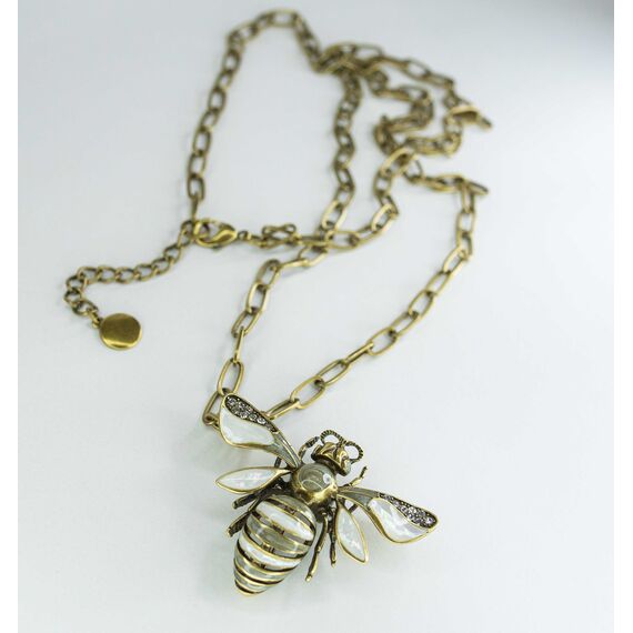 Подвеска,( колье), ( брошь) из гипоаллергенного ювелирного сплава желтого цвета. Вставка- ювелирное стекло, цвет- белый. Покрытие эмалью серого и белого цвета. Высота подвески-5,5см, ширина-4,5см. Длина якорной цепи-80,0+5см. Замок- карабин.