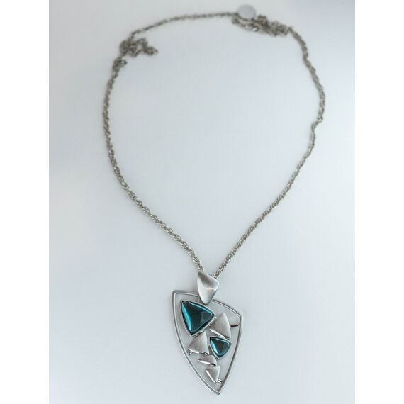 Подвеска женская ( колье) из гипоаллергенного ювелирного сплава серого цвета. Вставка- улексит, цвет- синий. Высота подвески-6,0см, ширина-3,0см. Длина кордовой цепи-55,0+5,0см.,замок- карабин.