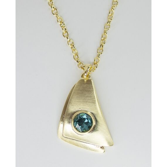 Подвеска женская (колье) из гипоаллергенного ювелирного сплава желтого цвета. Вставка- ювелирное стекло, цвет- лондон блю. Высота подвески- 5,0см, ширина-2,5см. Длина кордовой цепи-50,0см с удлиняющей цепочкой. Замок- карабин.