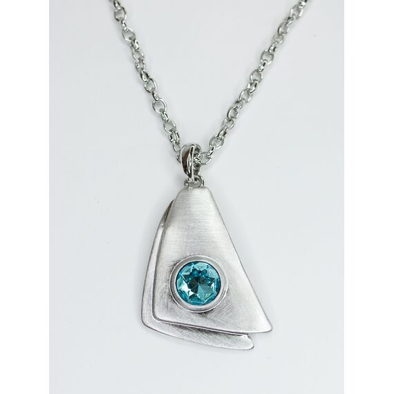 Подвеска женская ( колье) из гипоаллергенного ювелирного сплава серого цвета. Вставка- ювелирное стекло, цвет- голубой. Высота подвески- 5,0см, ширина-2,5см. Длина кордовой цепи-50,0см с удлиняющей цепочкой. Замок- карабин.