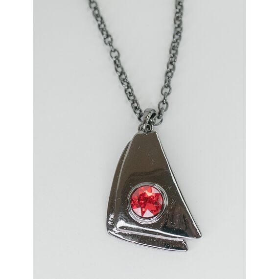 Подвеска женская ( колье) из гипоаллергенного ювелирного сплава черного цвета. Вставка- ювелирное стекло, цвет- красный. Высота подвески- 5,0см, ширина-2,5см. Длина кордовой цепи-50,0см с удлиняющей цепочкой. Замок- карабин.