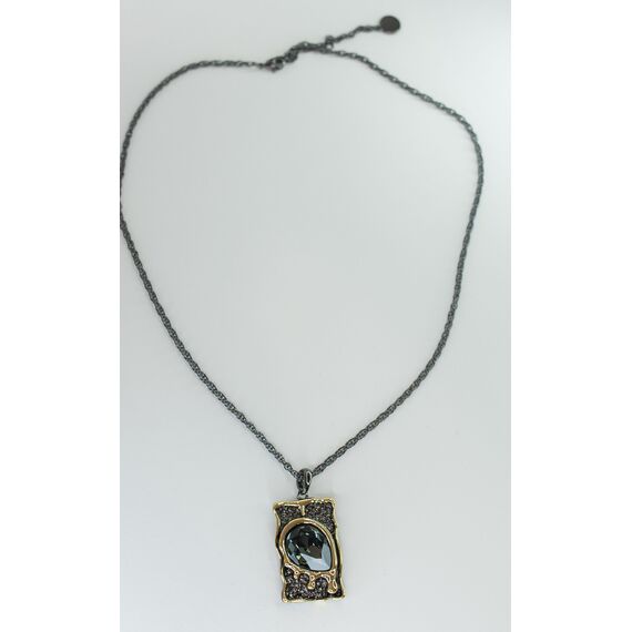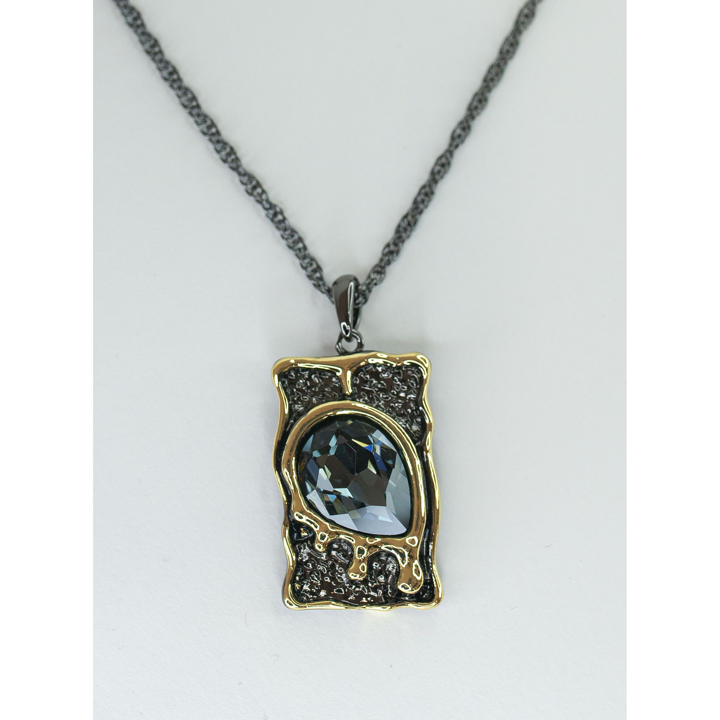 Подвеска женская (колье) из гипоаллергенного ювелирного сплава черного и желтого цвета. Вставка- кварц, цвет-серый. Высота подвески-4,0см, ширина-2,5см. Длина цепи-55,0см с удлиняющей цепочкой, застежка- карабин.